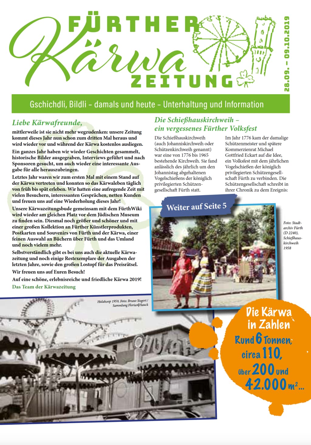 Erstmalig brachte das Redaktionsteam um Michael Krauß, Frank Drechsler und Nicole Schoger – mit Unterstützung der Stadt Fürth als Herausgeber – 2016 eine Zeitung der Altstadteinzelhändler „Grüner Markt und drumrum“ heraus. Aufgrund der guten Resonanz wurde das Ganze 2017 umbenannt in „Kärwazeitung“ und einmal jährlich in einer Auflage von 30.000 Stück produziert und kostenlos im gesamten Stadtgebiet Fürth sowie in speziellen Zeitungskästen direkt auf der Kirchweih verteilt.